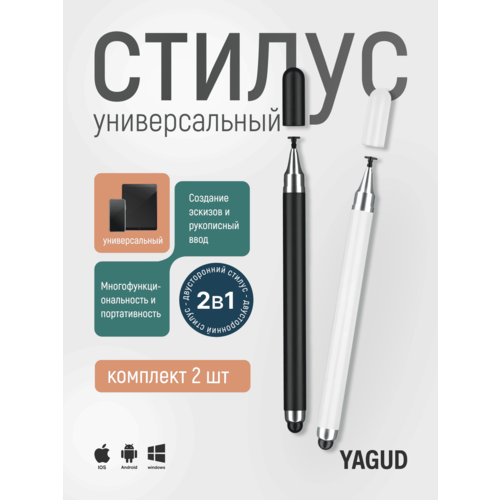 "Стилус" 2 штуки для рисования на смартфоне, планшете, универсальный, сенсорная ручка для телефона, набор черный и белый