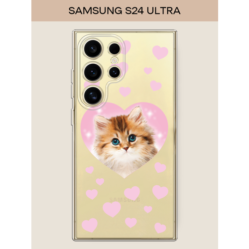Чехол на Samsung Galaxy S24 Ultra / Самсунг S24 Ultra с принтом Котенок в сердце, прозрачный