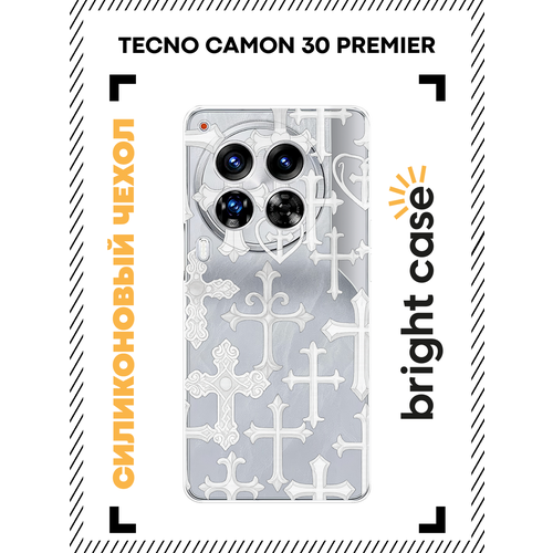 Чехол на Tecno Camon 30 Premier / Текно Камон 30 Премьер с принтом Белые кресты, прозрачный