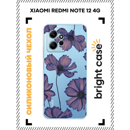 Чехол на Xiaomi Redmi Note 12 4G / Сяоми Редми Ноут 12 4G с принтом Фиолетовые космеи, прозрачный