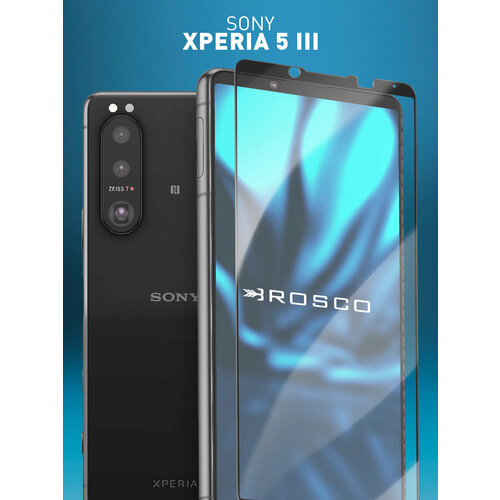 Защитное стекло Rosco на Sony Xperia 5 III (Сони Иксперия 5 3), с чёрной рамкой, 1 шт