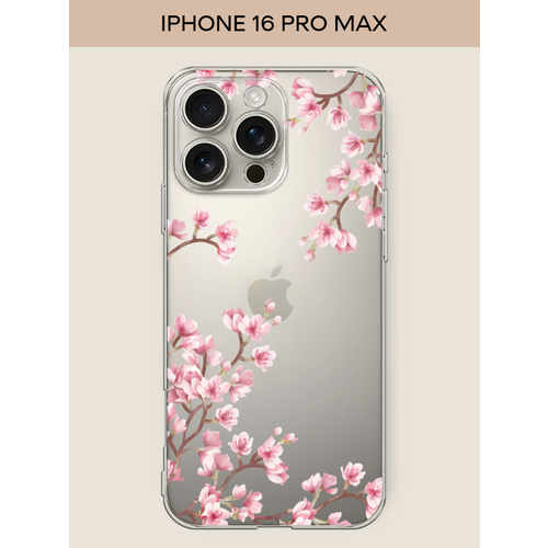 Силиконовый чехол "Весенняя сакура" на Apple iPhone 16 Pro Max / Айфон 16 Про Макс, прозрачный