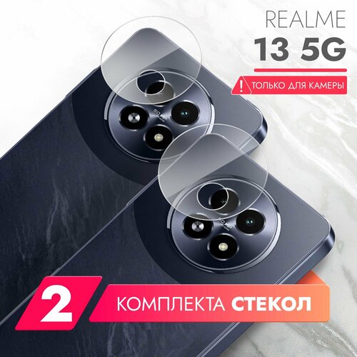 Защитное стекло для Realme 13 5G (Реалми 13 5г) на Камеру 2 штуки, (гибридное: пленка+стекловолокно), прозрачное силиконовая клеевая основа тонкое Hybrid Glass, Brozo
