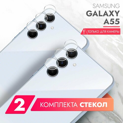 Защитное стекло для Samsung Galaxy A55 (Самсунг Галакси А55) на Камеру 2 шт, (гибридное: пленка+стекловолокно), прозрачное силиконовая клеевая основа тонкое Hybrid Glass, Brozo
