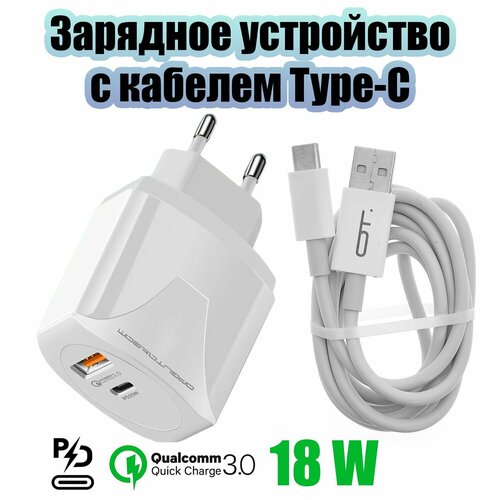 Быстрая зарядка для телефона 18W с кабелем Type-C адаптер QC 3.0/PD Орбита OT-APU62