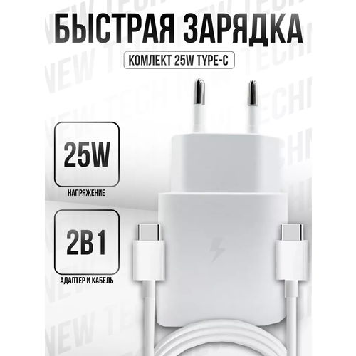 Быстрое сетевое зарядное устройство 25W для Samsung / кабель Type-c в комплекте / Белый