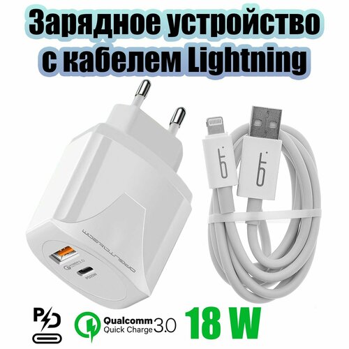 Быстрая зарядка для телефона 18W с кабелем Lightning адаптер QC 3.0/PD Орбита OT-APU62
