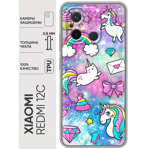 Дизайнерский силиконовый чехол для Сяоми Редми 12С / Xiaomi RedMi 12C Единороги