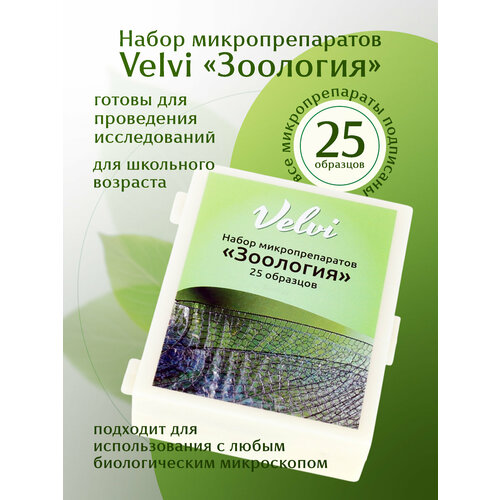 Набор микропрепаратов для микроскопа Velvi "Зоология", 25 образцов