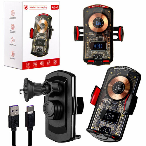 Автомобильное беспроводное зарядное устройство A6-1 красный+черный