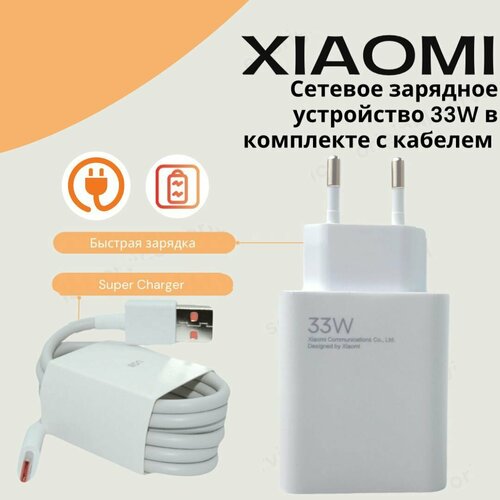 Сетевое зарядное устройство/адаптер для Xiaomi с USB входом 33W в комплекте с кабелем Type-C USB 6A