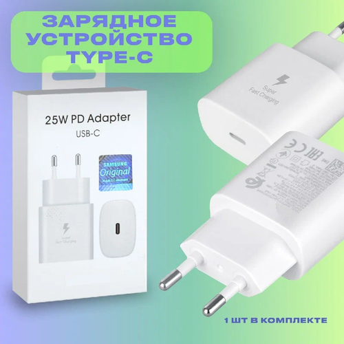 Адаптер для Samsung 25W USB-C + Кабель Type-C (3A), быстрая зарядка, черный