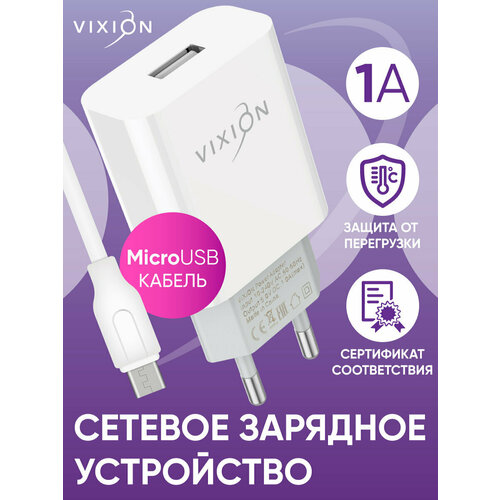 Сетевое зарядное устройство VIXION L4m (1-USB/1A) + micro USB кабель 1м