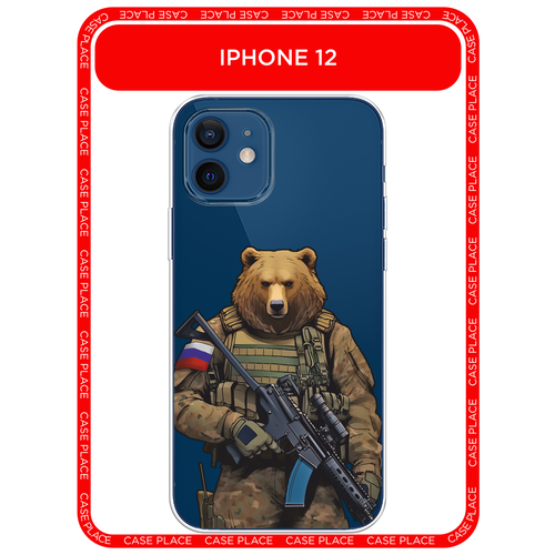 Чехол на Apple iPhone 12/12 Pro / Айфон 12/12 Про с принтом Медведь с автоматом, прозрачный