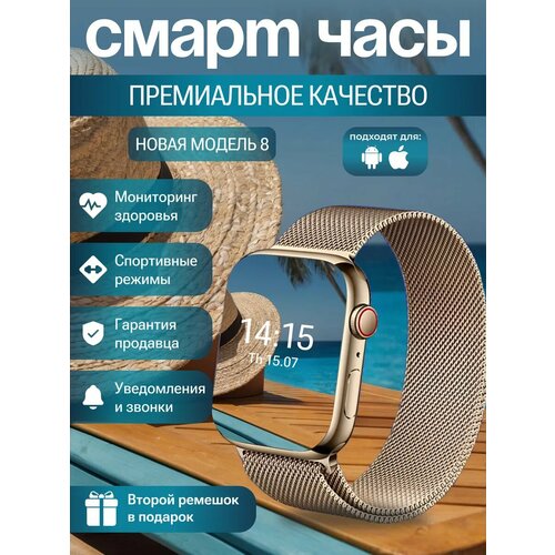 Умные смарт часы X8+ Pro, Super Amoled Экран, СhatGPT, 2 ремешка, Bluetooth Звонки, Android, iOS, Золотые