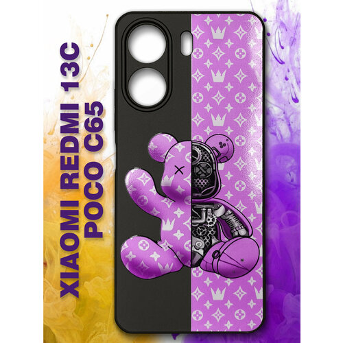 Силиконовый чехол на Xiaomi Redmi 13C с принтом Фиолетовый мишка Редми 13С