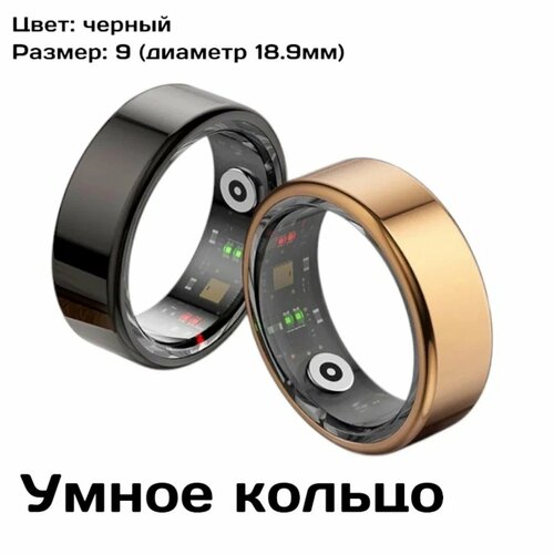Cмарт-кольцо, Smart Ring, умное кольцо, водонепроницаемое, измерение калорий, кислорода, сна, шагомер Black №9 (18.9 мм)