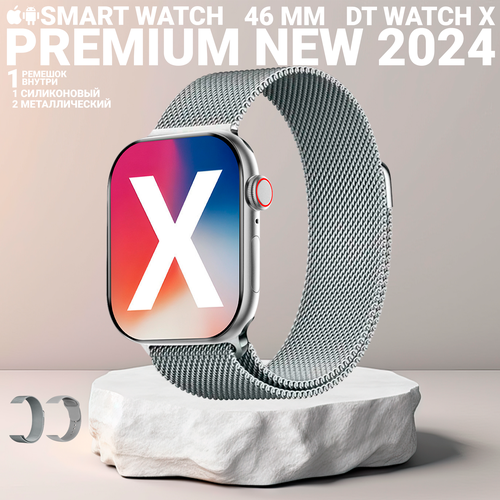 Смарт часы DT WATCH X, Умные часы watch 10, premium smart watch, 46 мм с NFC, 2 ремешка, Серебристый