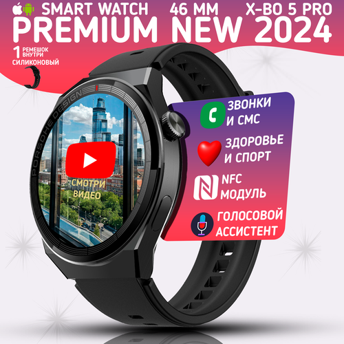 Умные часы XBO 5 PRO, Смарт часы watch X-BO 5PRO, premium smart watch, 46 мм с NFC и магнитной зарядкой, Черный