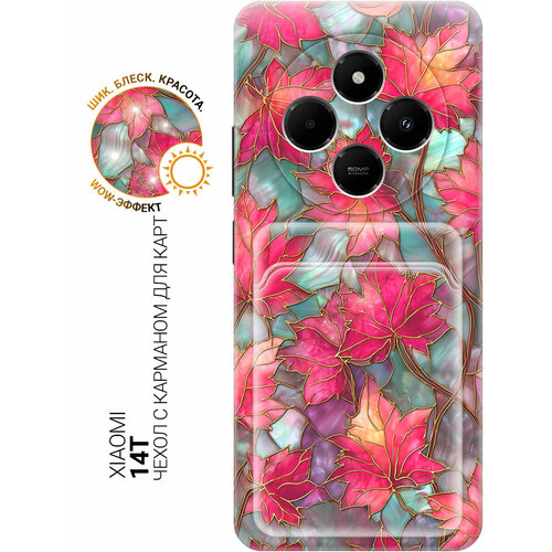 Силиконовый чехол на Xiaomi Redmi 14C / Poco C75 с принтом "Огненная симфония клена в витражном исполнении" с карманом для карты