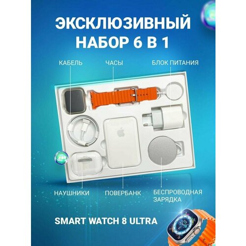 Подарочный набор 6 в 1/Смарт часы/Внешний аккумулятор/Адаптер 20W/Беспроводные наушники/БЗУ MagSafe/Кабель Lightning