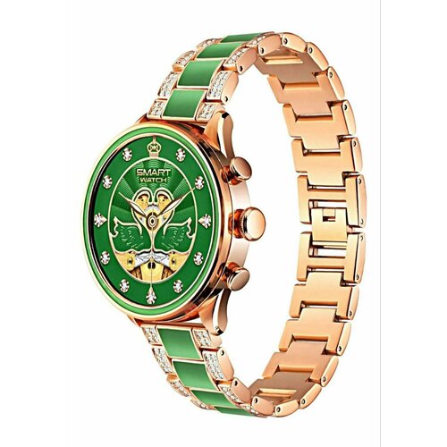Умные женские часы GEN 11 Smart Watch, Смарт-часы для девушек 2023, 2 ремешка, iOS, Android, Bluetooth, Зеленый с золотом