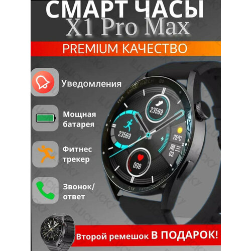 Смарт часы X1 PRO MAX Smart Watch 2024 круглые мужские умные часы, 2 ремешка