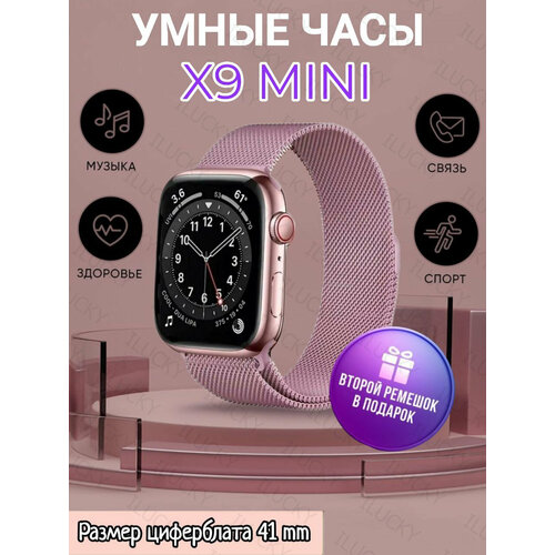 Умные часы Smart Watch x9 mini 41 mm, смарт часы, новинка 2024 , наручные смарт часы, женские, мужские, детские, фитнес браслет, сенсорный экран, шагомер, электронные часы, спортивные, унисекс, Розовые