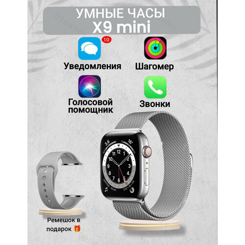 Смарт часы X9 mini женские, детские 41 мм серые / smart watch 9 серии электронные наручные с gps / Фитнес браслет для IOS, Android, Iphone
