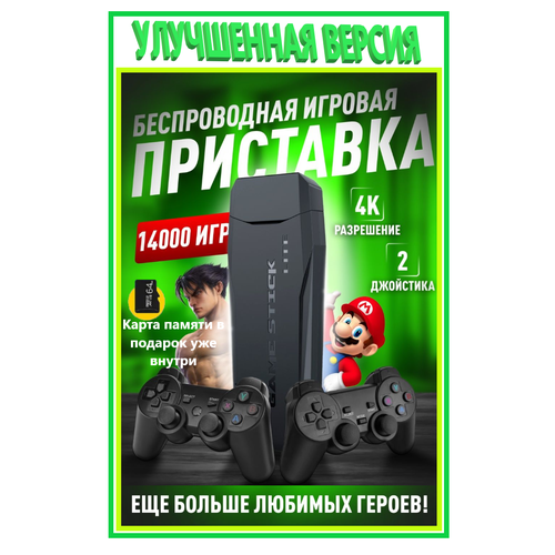 Игровая консоль с ретро видео играми на 64 Гб ( 13 000+ игр ) , с 2 джойстиками к телевизору и Русским меню