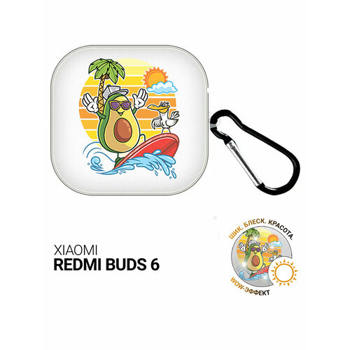 Чехол на Xiaomi Redmi Buds 6 с принтом "Avocado Surfer" прозрачный