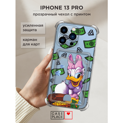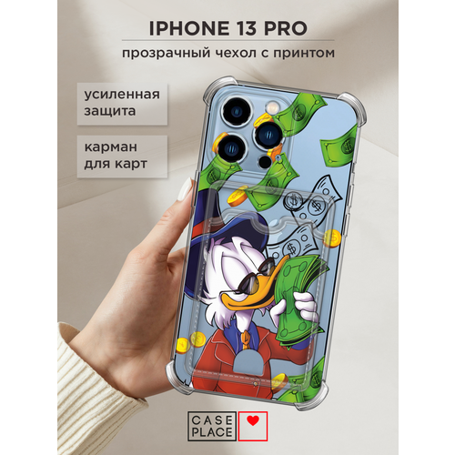 Чехол на Apple iPhone 13 Pro (Айфон 13 Про) с картой и принтом Скрудж Макдак