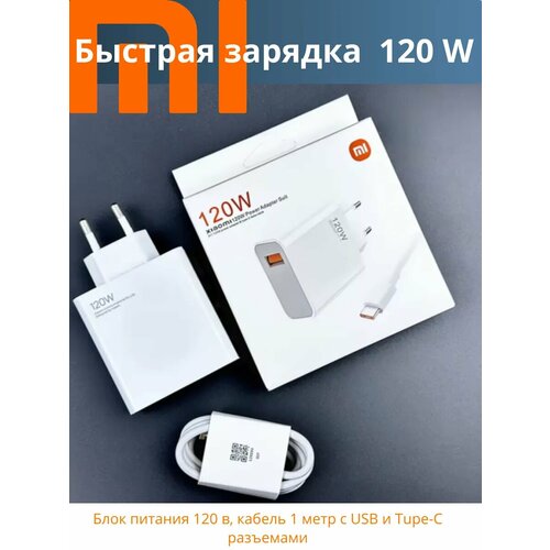 Зарядное устройство для Xiaomi 120W в комплекте с кабелем Type-C 6A. Быстрая зарядка. В упаковке
