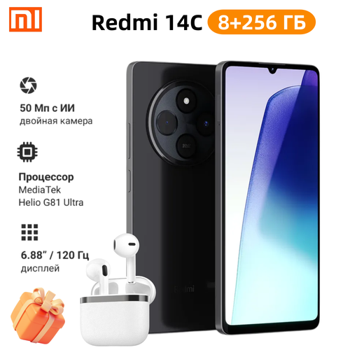 Смартфон Redmi 14C 8+256GB, 120Гц, 50 МП, быстрая зарядка, Midnight Black