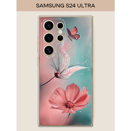 Чехол на Samsung Galaxy S24 Ultra / Самсунг S24 Ultra с принтом Бабочка и цветок