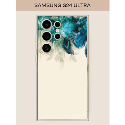 Чехол на Samsung Galaxy S24 Ultra / Самсунг S24 Ultra с принтом Перья голубого цвета