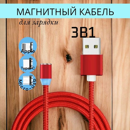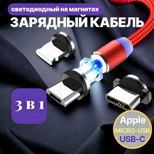 Магнитный зарядный кабель VVO USB Type-C, Lightning, MicroUSB, 1 м