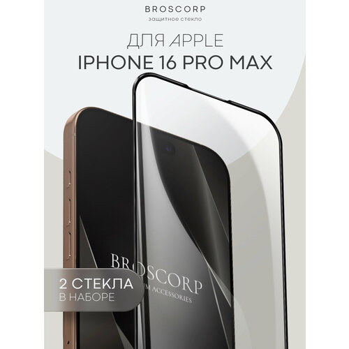Набор защитных стёкол BROSCOP на Apple iPhone 16 Pro Max (Айфон 16 Про Макс), глянцевые с чёрной рамкой, 2 шт