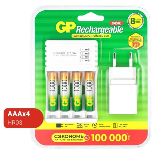 Зарядное устройство GP CPB-2CR4 + 4xAAA 1000 mAh + Adapter (100AAAHC/CPBA-2CR4)