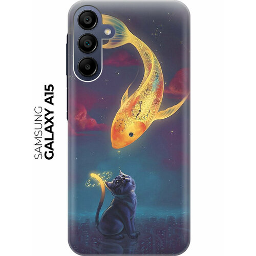 Силиконовый чехол на Samsung Galaxy A15 / Самсунг А15 с рисунком "Кот и рыбка"