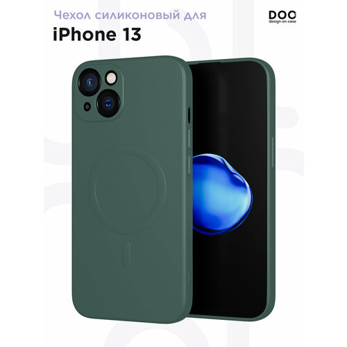 Чехол DesignOnCase "темно-зеленый", для iPhone 13, противоударный, силикон, soft-touch, с Магнитом