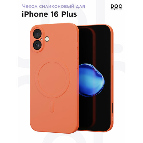 Чехол DesignOnCase "оранжевый", для iPhone 16 Plus, противоударный, силикон, soft-touch, с Магнитом