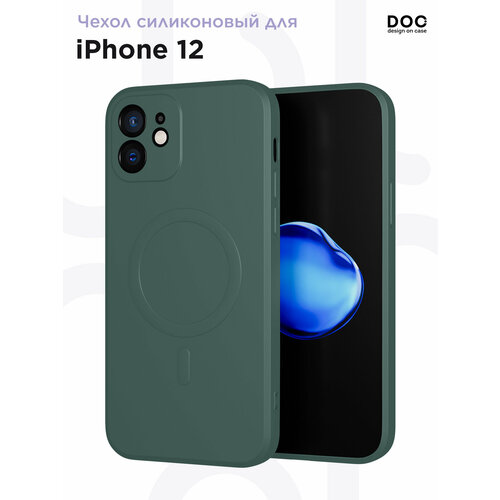 Чехол DesignOnCase "темно-зеленый", для iPhone 12, противоударный, силикон, soft-touch, с Магнитом