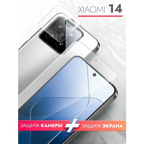 Защитное стекло для Xiaomi 14 (Ксиоми 14) на Экран и Камеру, (гибридное: пленка+стекловолокно), прозрачное силиконовая клеевая основа тонкое Hybrid Glass, Brozo