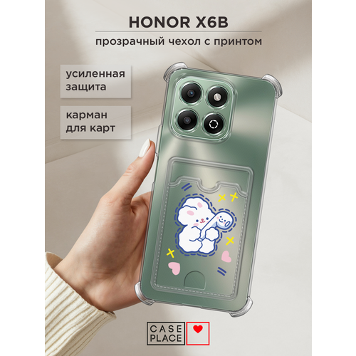 Чехол на Honor X6b (Хонор X6b) с картой и принтом Мишка с наушником в корейском стиле