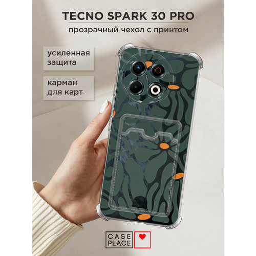 Чехол на Tecno Spark 30 Pro (Текно Спарк 30 Про) с картой и принтом Волнистые цветы