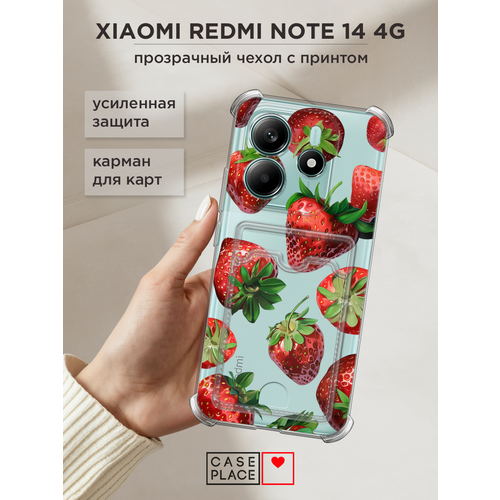Чехол на Xiaomi Redmi Note 14 4G (Редми Нот 14 4G) с картой и принтом Сочная клубника 4