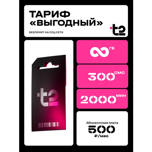 SIM-карта Tele2 “Выгодный” — безлимитный интернет, 2000 минут, 500 СМС, 500 ₽/мес
