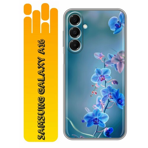 Чехол для Samsung Galaxy A16 с принтом Голубые цветы (Самсунг Галакси А16)