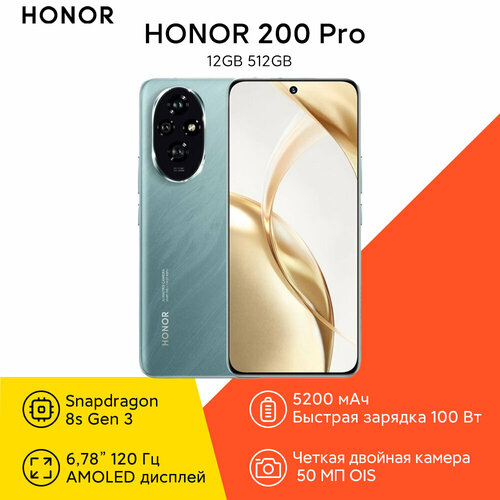 Смартфон Honor 200 Pro, 12ГБ/512ГБ, AMOLED 6.78", Голубой океан